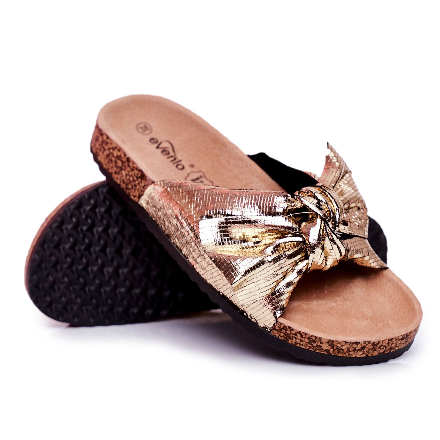 EVE flip-flops attract attention with a unique element - a large bow, which adds charm and elegance. Thanks to the slip-on construction, putting them on is quick and easy, and the lack of a nose makes them extremely airy and ideal for warm days.