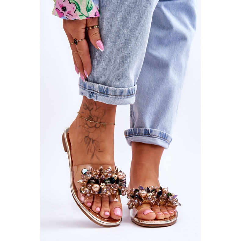 Women's Flip-Flops With Decorative Stones S.Barski KV-576-3 Gold – Elegance in Every Step
