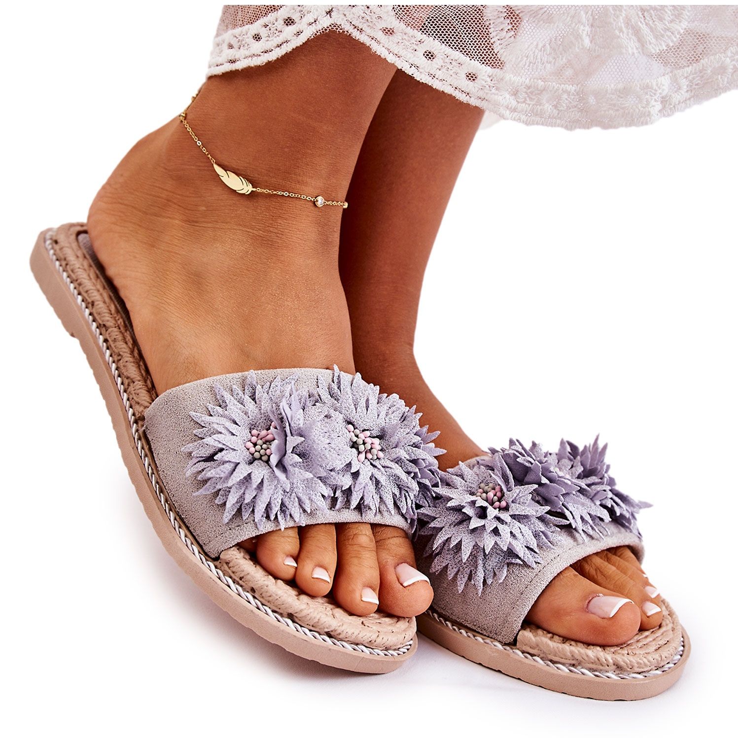 Introducing WJ1 Women's Slides with Material Flowers in an elegant grey shade by Susana, which perfectly fit into the fashion trends of spring and summer. These classic slides impress not only with their appearance, but also with the comfort of wearing.