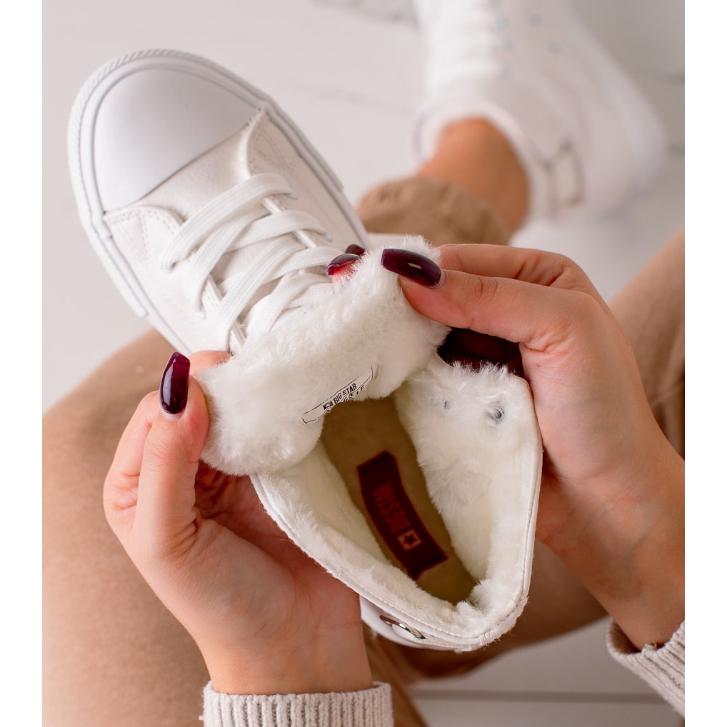 Women's Big Star V274541 sneakers in white are an ideal choice for women who value comfort, style and modern design. Made of high-quality materials, these high sneakers have an upper made of imitation leather, which guarantees not only an elegant look, but also ease of maintenance. The soft, closed heel counter ensures comfort of wearing all day long, and the fur lining makes them perfect not only for spring and summer, but also for autumn days.