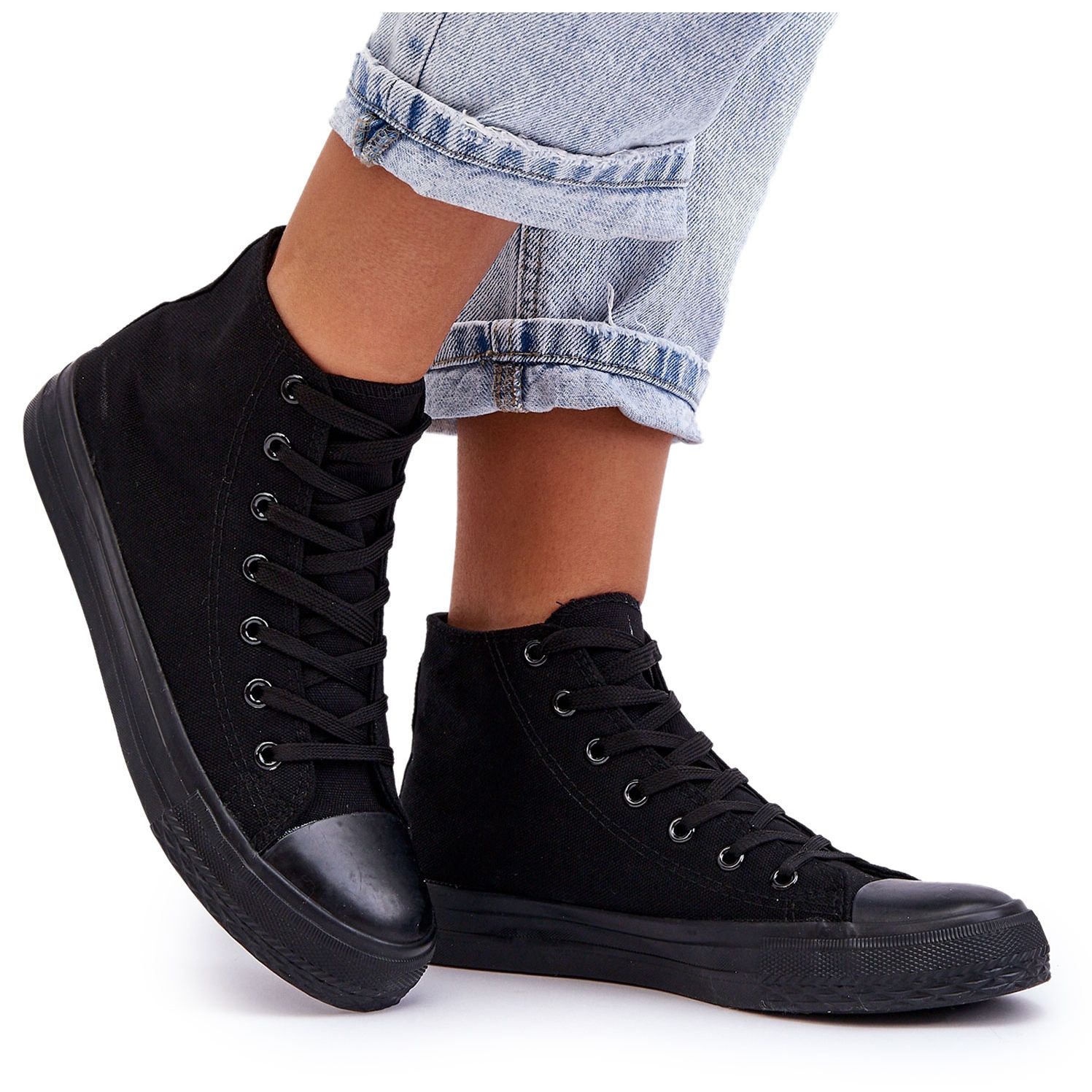Women's black socerio sneakers are a great choice for women who want to combine comfort with a fashionable look. Made of high quality textile material, these high sneakers offer the pleasure of wearing all day. The classic, black color makes them perfectly fit into any stylization - both everyday and more elegant.