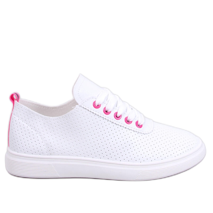 Gelman White/Fuksja women's sneakers - white with pink accents that immediately catch the eye. Lowed, low shoes with a round nose combine a casual style and comfort - perfect every day, a walk around the city or meeting with friends.