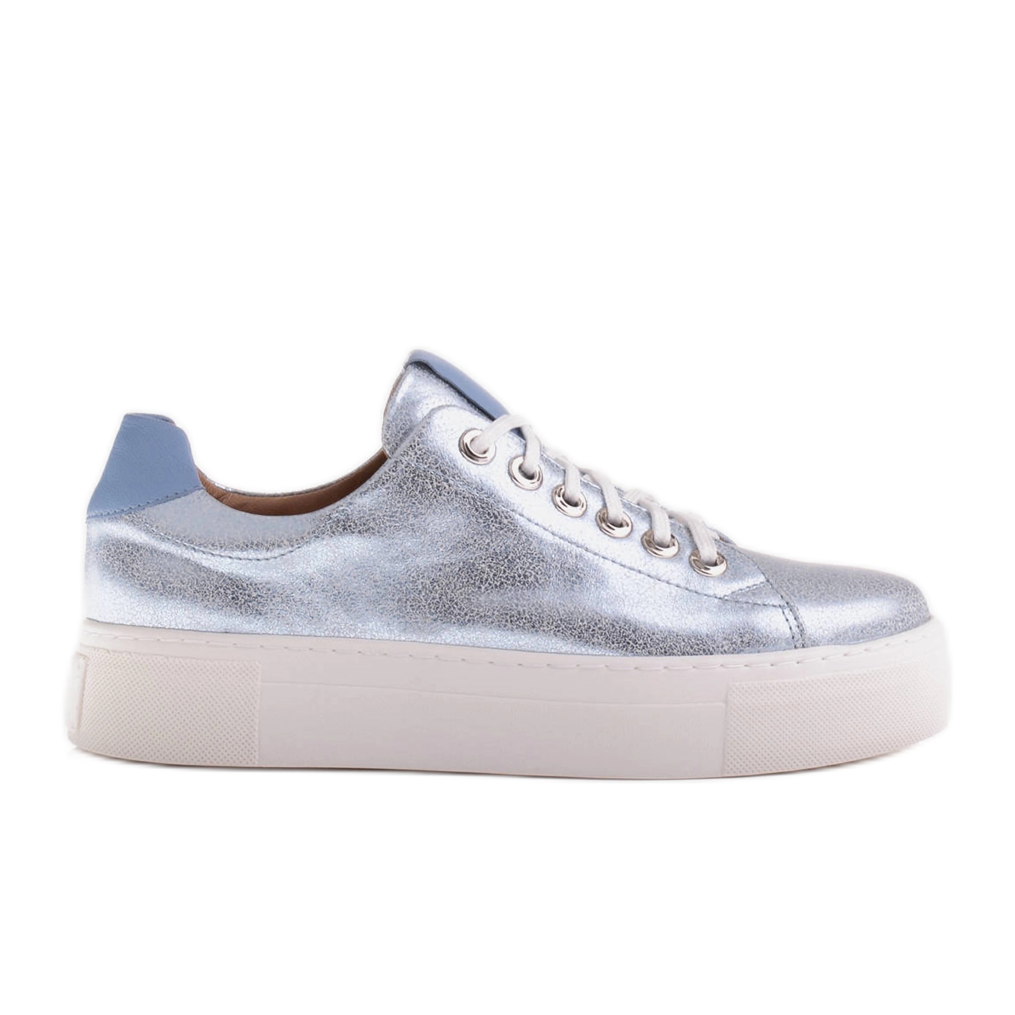 Marco Shoes - Women's natural leather sneakers on a thick sole (blue)