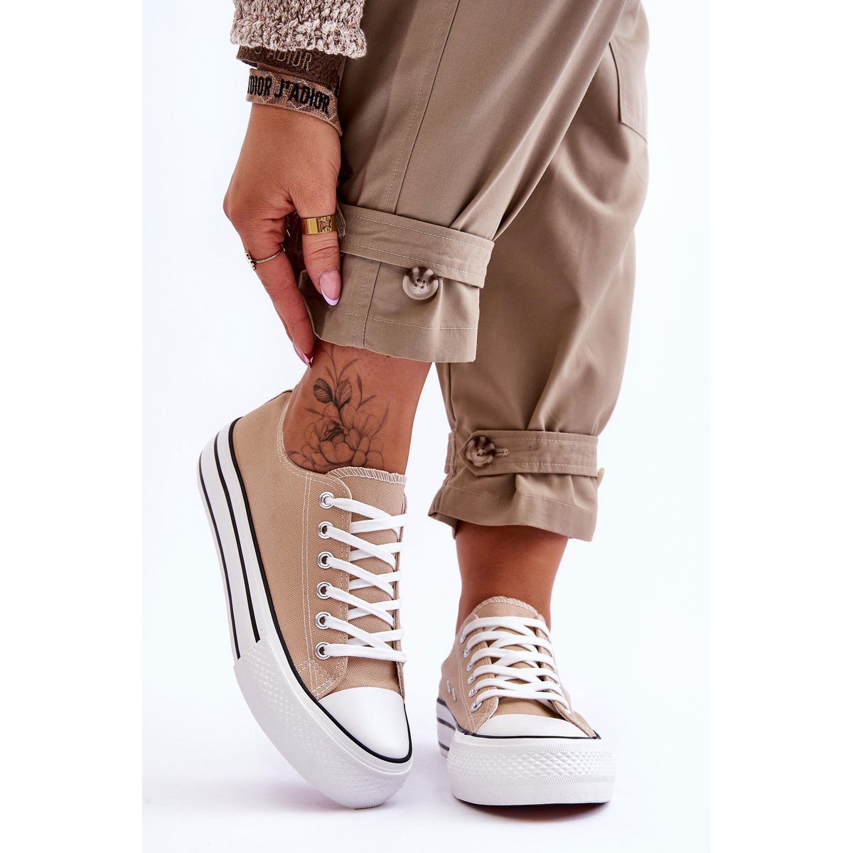 Discover modernity and comfort in one model - women's sneakers on a massive Ember platform in beige. These classic shoes are a perfect complement to many styles, ideal for both everyday and more casual occasions. Made of high-quality fabric, they provide softness and breathability, making them an ideal choice for warmer days.