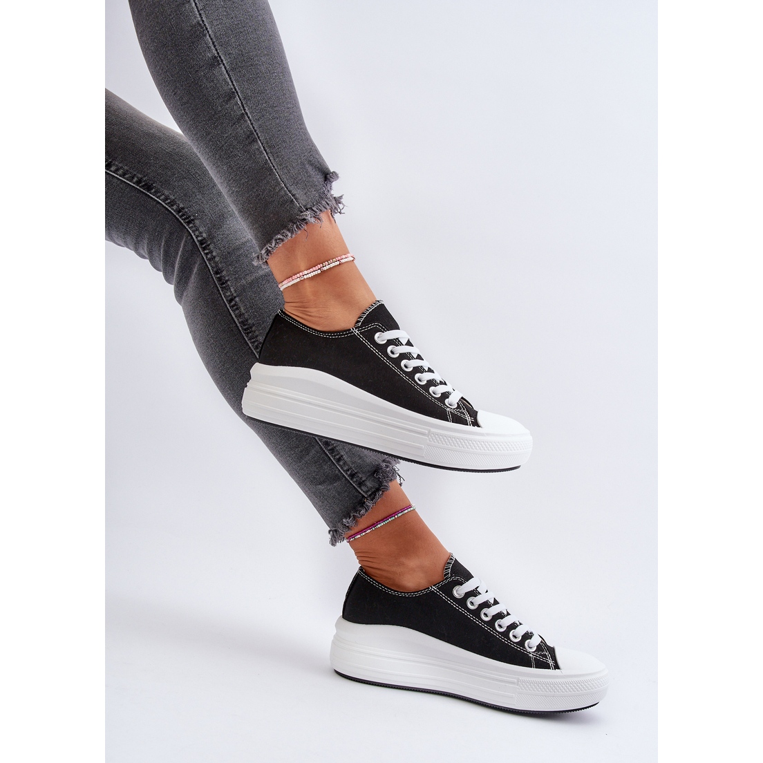 Discover extraordinary style and comfort with women's sneakers on a massive platform in black from the Amyete brand. These unique sneakers are a perfect combination of modern design and functionality, which makes them an excellent choice for everyday use. Thanks to the platform height of 4.5 cm, you will gain a few centimeters of height, while enjoying stability and confidence in every step.
