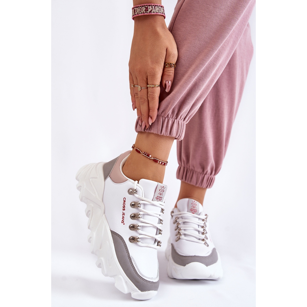 Women's sneakers on the Cross Jeans KK2R4071C platform - white with gray accents
