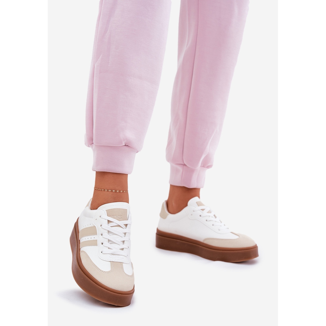 Inna marka Women's sneakers on the platform with eco leather beige and white