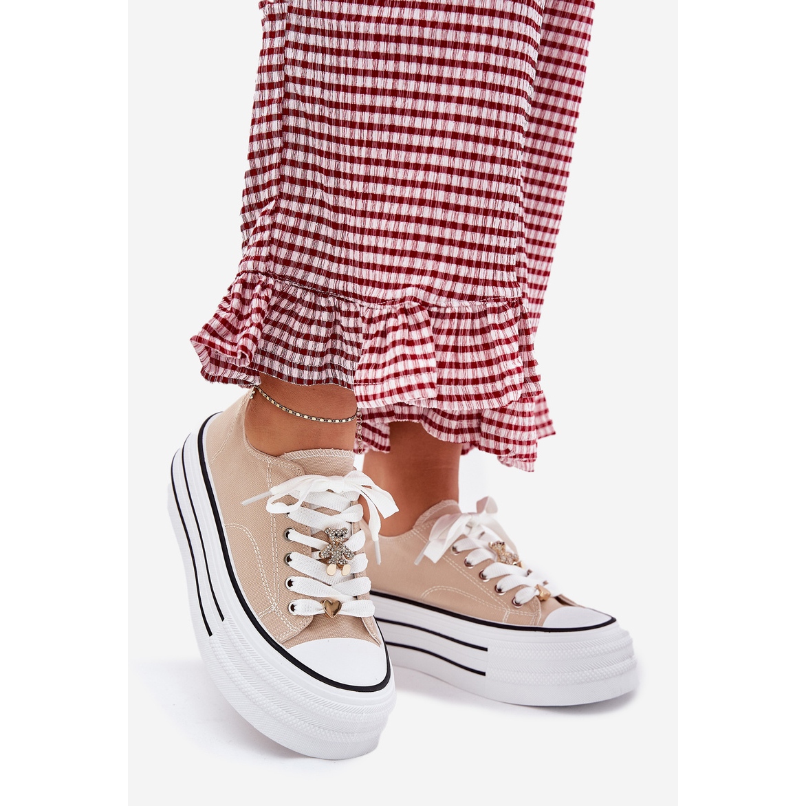 We present women's sneakers on the platform in beige, which perfectly fit into current fashion trends. These stylish and comfortable shoes are made of textile material, which ensures adequate ventilation and comfort of wearing all day.