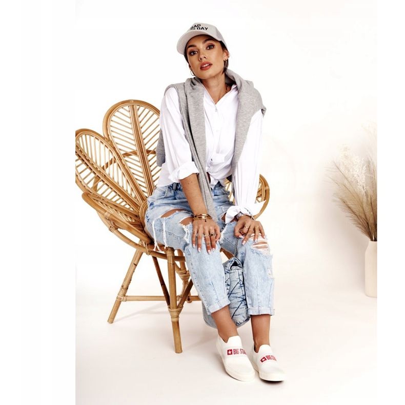 We present the Big Star FF274219 women's slip-on sneakers in a fashionable white color, which are the perfect choice for any weather. These slip-on shoes from the Polish brand Big Star combine comfort and modern design, making them perfect for everyday styling.