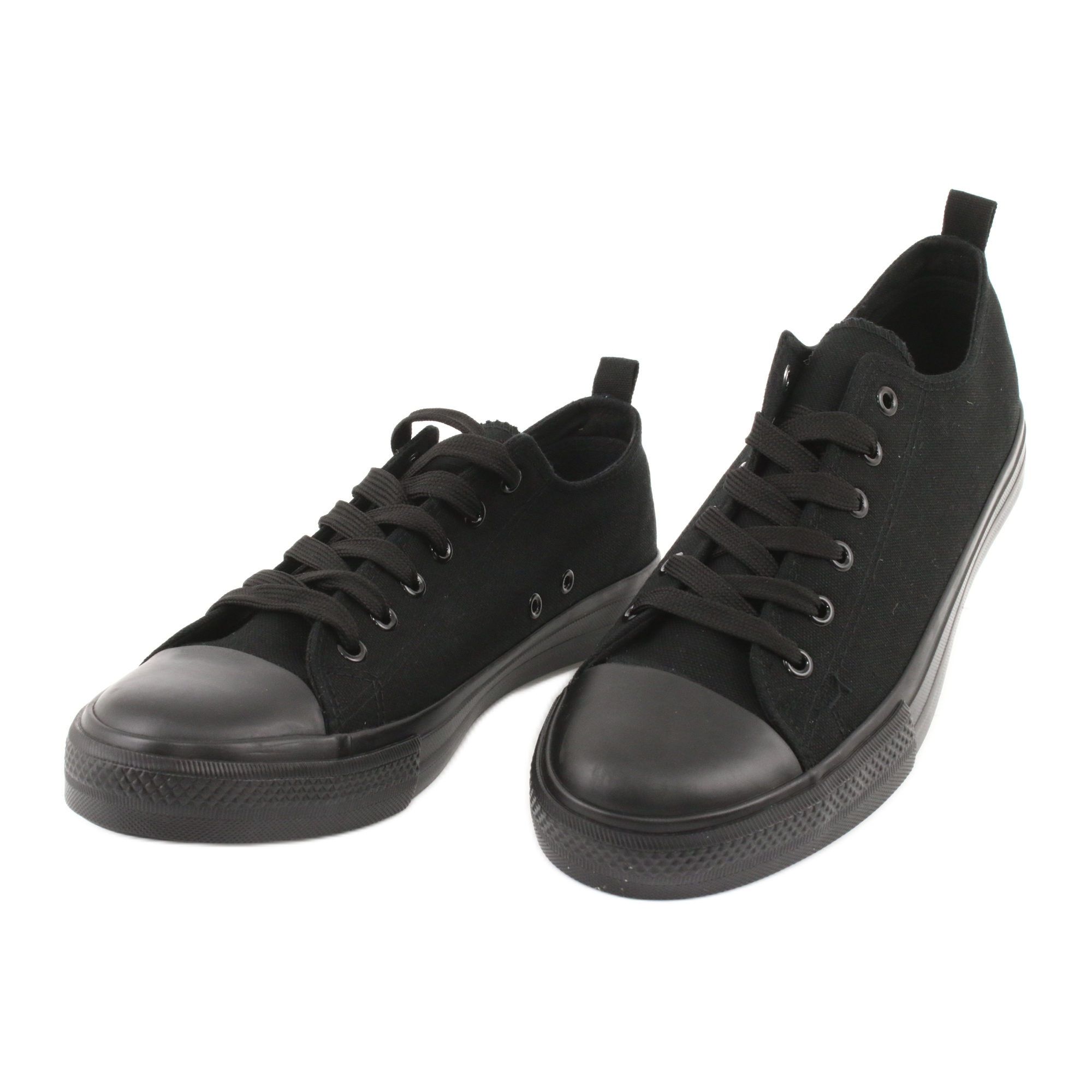 The sneakers have a thick rubber sole, which not only perfectly isolates the foot from the ground, but also guarantees anti-slip properties, which minimizes the risk of accidental falls. The upper part of the shoes is made of high-quality black textile material, which ensures appropriate flexibility, comfort and perfect fit to the foot. Solid stitching made of thick thread strengthens the structure, while the rubber tip effectively protects fingers against injuries.