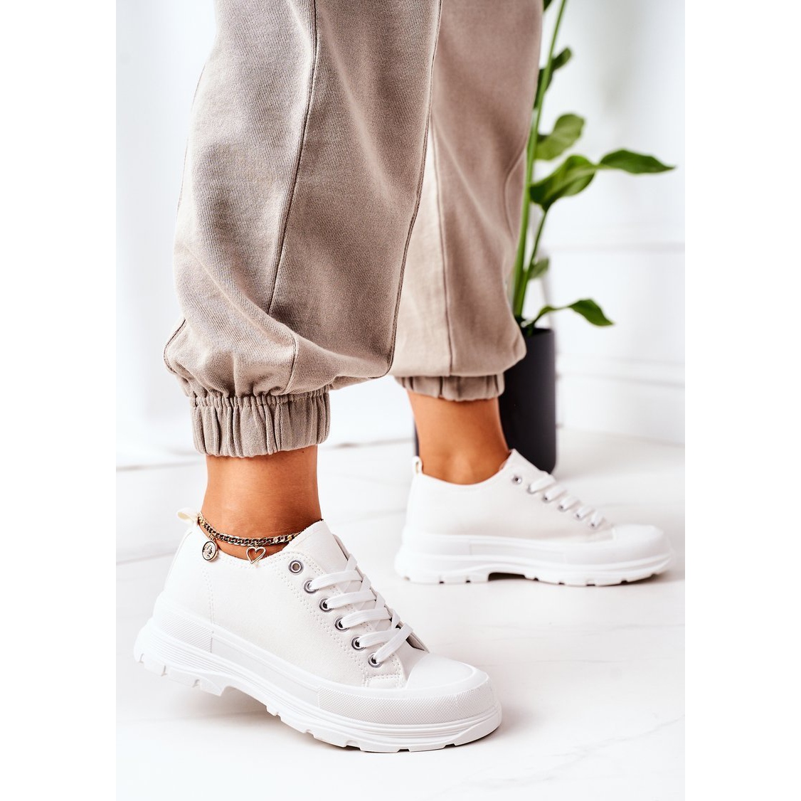The women's white platform sneakers from Travel Time are a great choice for any fashionable woman who wants to combine comfort with modern style. These trendy sneakers feature a large, 4.5 cm high rubber platform that not only adds a bit of height but also provides stability when walking.