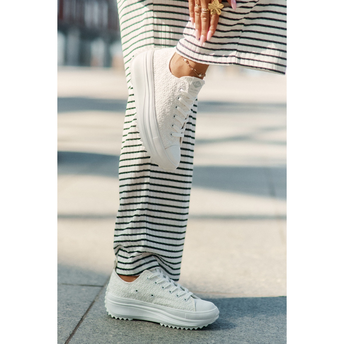 Women's Lee Cooper LCW-25-31-3465L sneakers are a great choice for every fashionable woman who appreciates both comfort and style. Made of high quality fabric, these white sneakers on the platform are distinguished by a subtle embroidery with a floral pattern, which gives them originality and feminine charm.