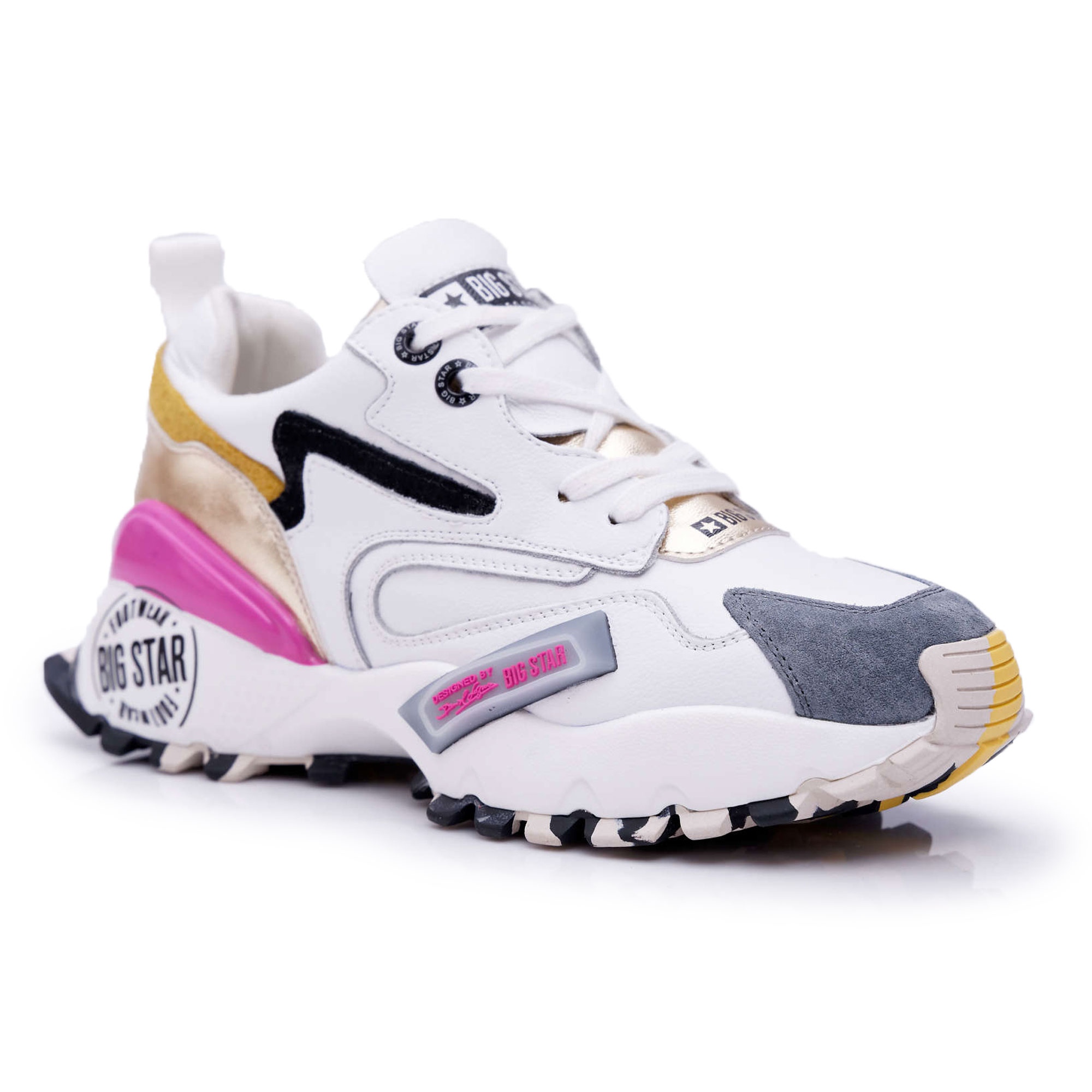 Women's sports shoes Big Star by Daniel Lopez FF274414 are a great choice for women who value comfort and modern design. These multi-colored shoes, signed by the "by Daniel Lopez" brand, combine classic and bold accents. White leather is a great base, to which gold and suede inserts were added, creating an effective composition.