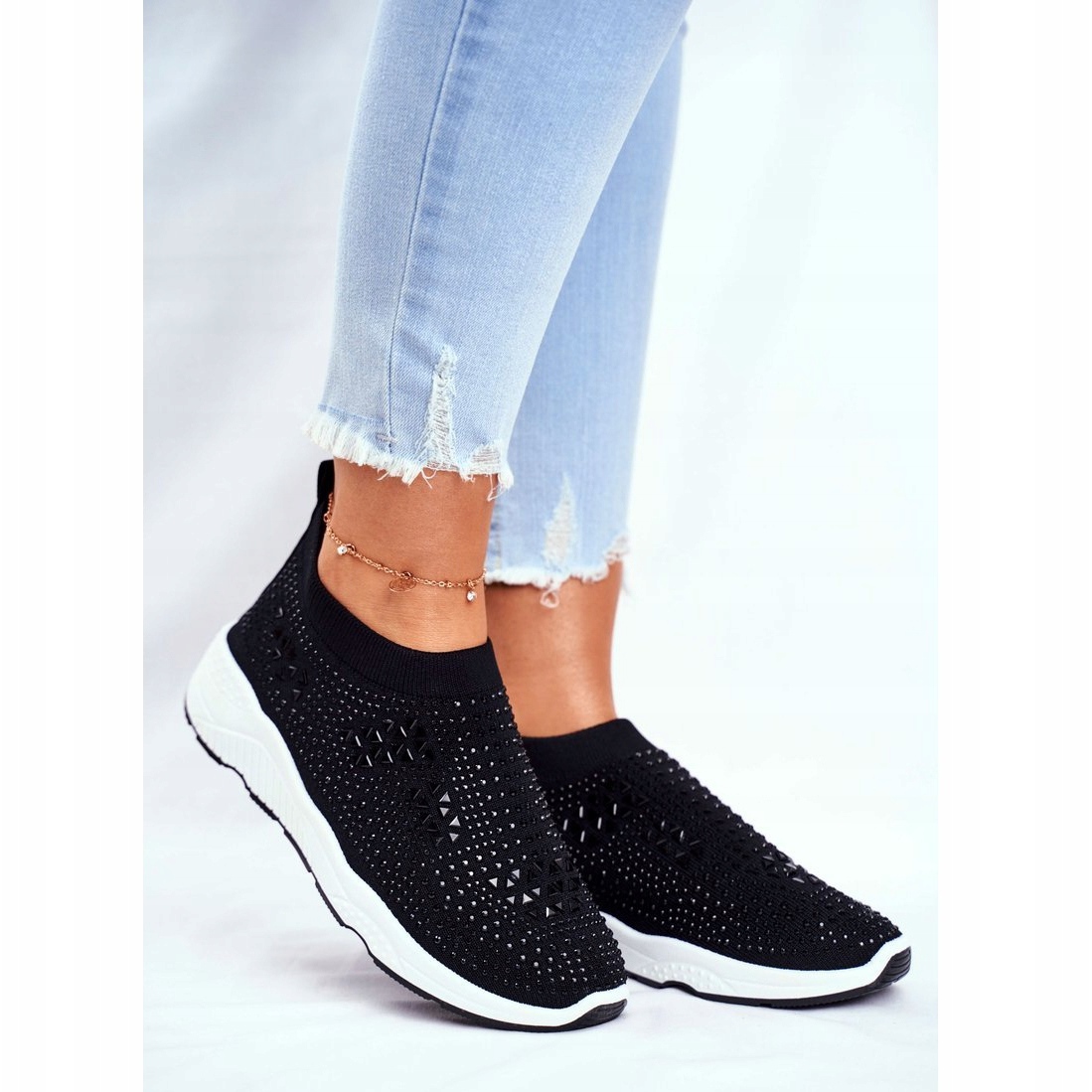 Women's Sports Shoes Light Black Zircons Santol are a great choice for women who value comfort and a fashionable look. These unique shoes are made of breathable fabric, which ensures adequate ventilation even during intense activities. Their elegant, black color and decorative zircons give them a unique style, and the elastic on the heel makes it easier to put on.