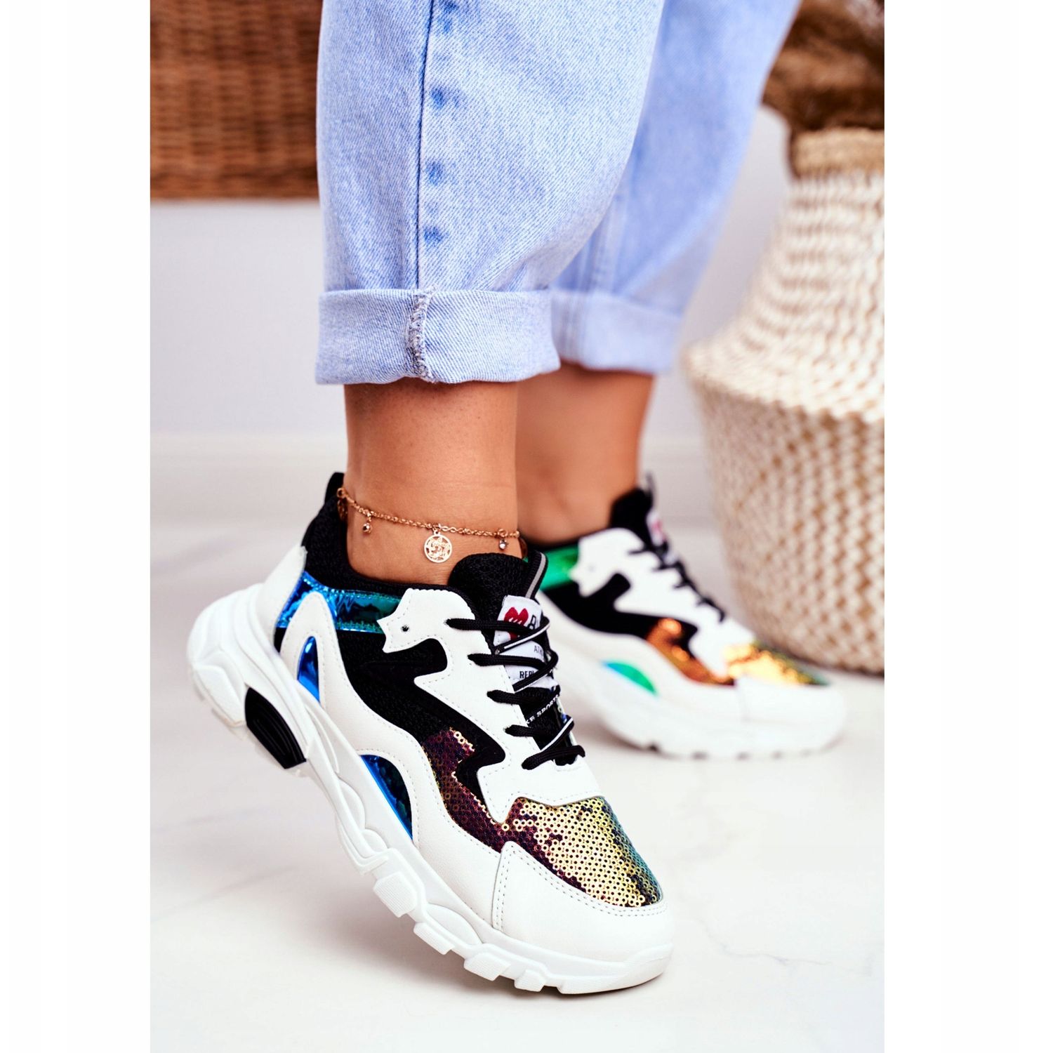 The high, thick sole with a height of 4 cm provides excellent cushioning and comfort of wearing. Additionally, fashionable reflective motifs and sequin details attract attention and make no one pass you by indifferently. The shoes are available in classic black, which perfectly matches any styling.