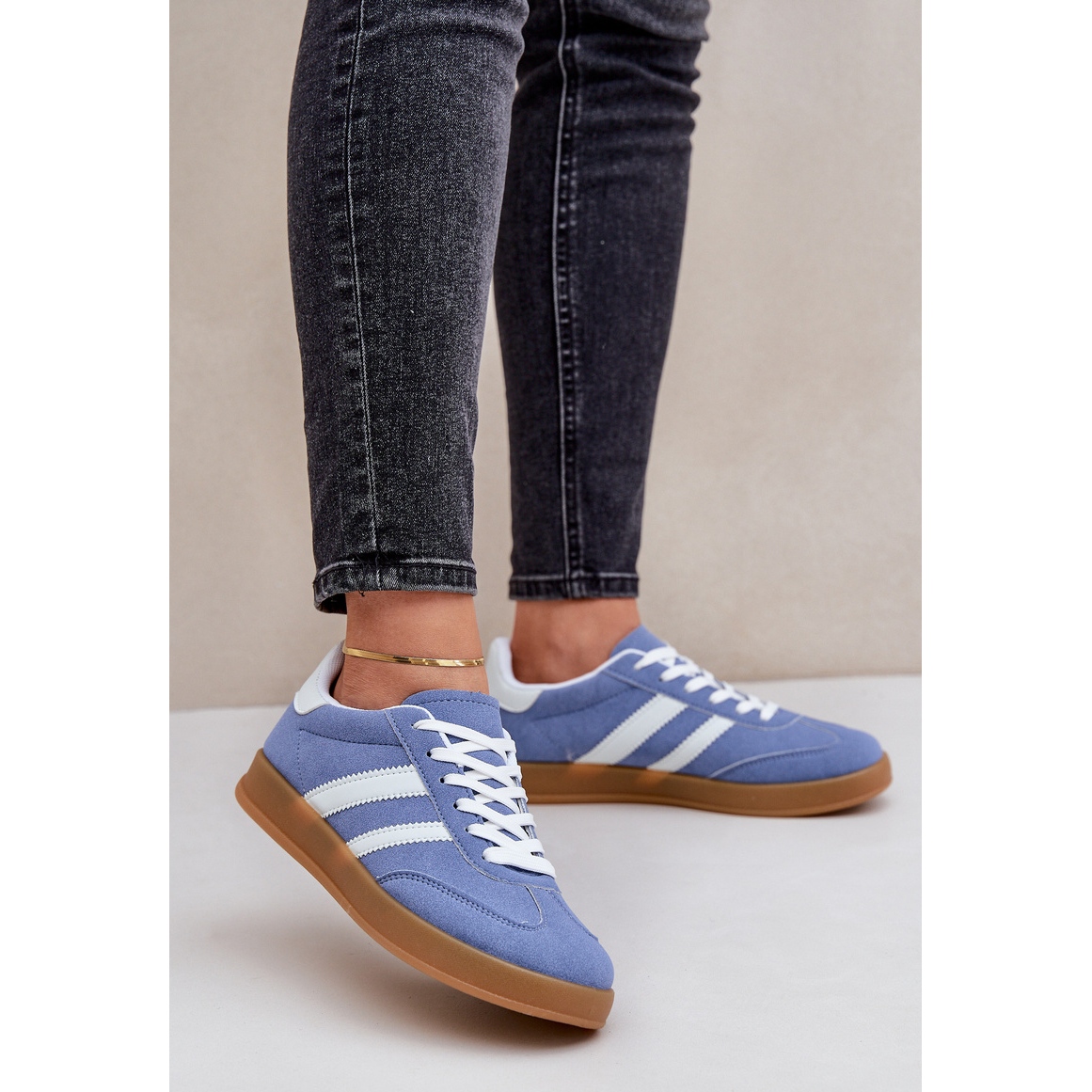 Women's low -blue sports sneakers are the perfect choice for women who value comfort and style every day. Made of eco suede, they are characterized by a low upper, which makes them extremely comfortable and easy to wear. Classic lacing allows you to perfectly match the foot, and the rounded toes give them a universal character, which will be great in various stylizations.