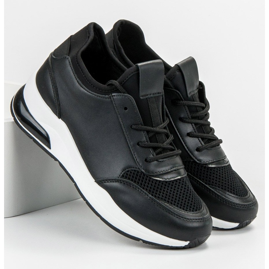 Thanks to the white sole, these black sports shoes can be easily matched to various styles. Whether you are going for a walk, to the gym or for weekend shopping, the Ideal Shoes model will work for every occasion.
