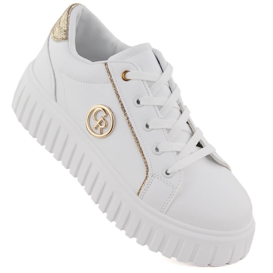Women's sports shoes on the white news 4757 platform are a great choice for stylish and active women. Made of high quality organic leather, these fashionable shoes perfectly fit into the latest trends, adding a bit of elegance and shine.