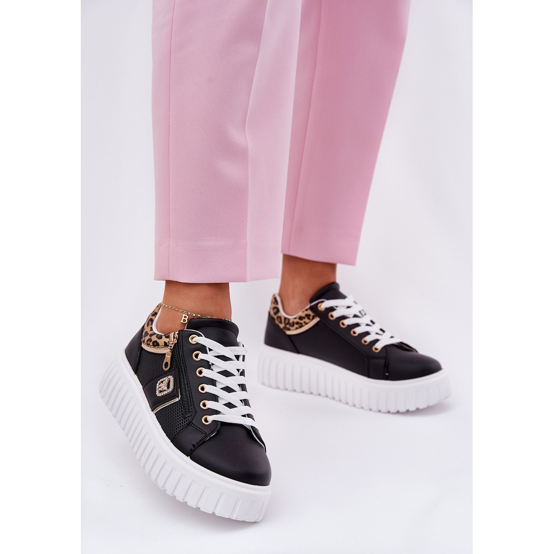 Details: Women's sports shoes on platform with eco leather leopard leopard print black
