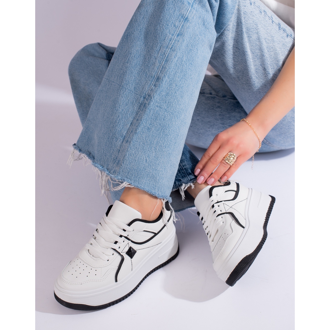 Discover a new dimension of urban style with white Shelovet women's sports shoes, which combine classic aesthetics with modern design. This exceptionally stylish model impresses with its combination of white with contrasting black accents, creating an elegant and universal color palette that will perfectly fit into the urban dress code.