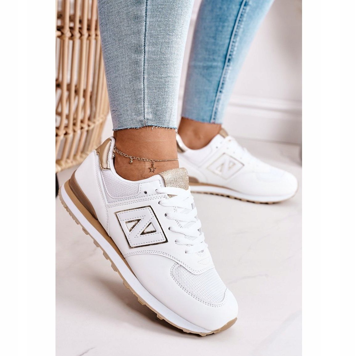 Inna marka Women's sports shoes Sneakers White and Gold Last Minute golden