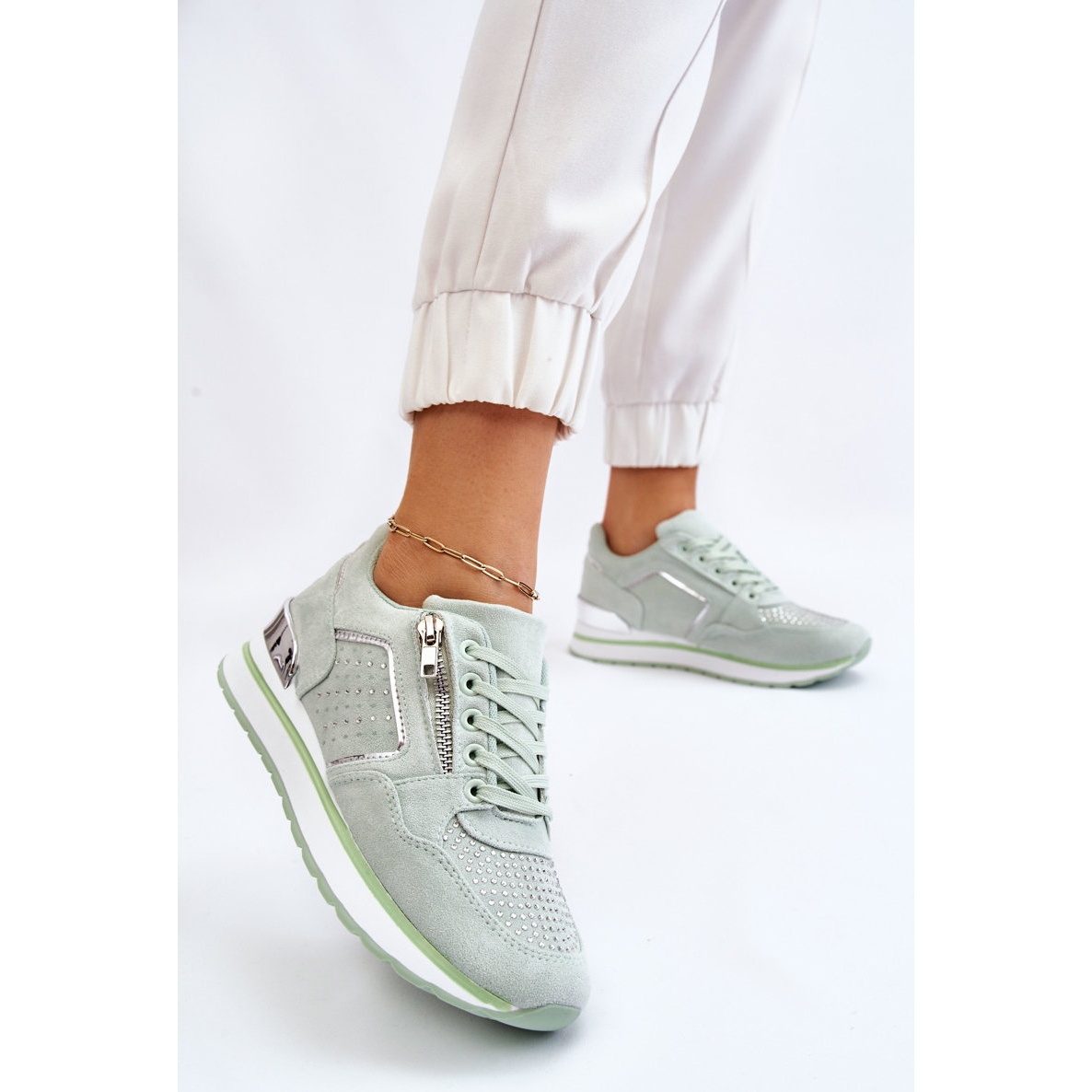 Women's Sports Shoes PG1 with Decorative Zipper in Green Color is a great choice for women who value both comfort and fashionable look. Made of high-quality eco-suede, these sports shoes are distinguished by a pleasant to the touch material that ensures comfort when worn. Decorated with rhinestones imitating zircons and an elegant zipper, they attract attention and add character to any styling.