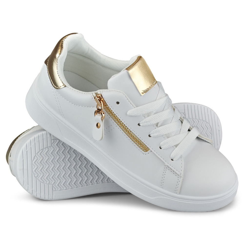 Elegant and universal women's sneakers that combine sports comfort with a fashionable finish. Made of high quality ecological leather in white, with a subtle golden castle as a stylish accent. Perfect for everyday stylizations - from jeans to dresses in a sports edition.