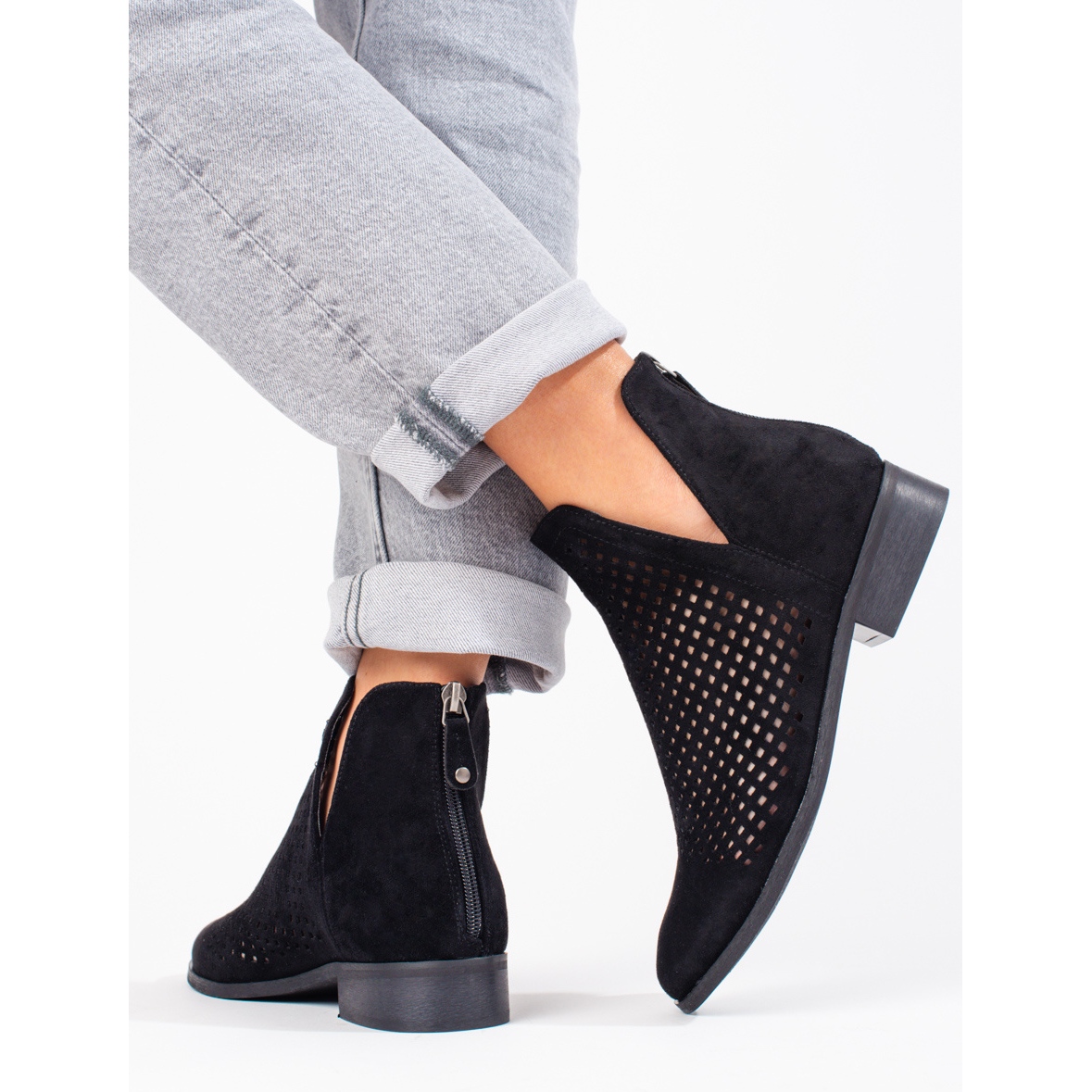 W. Potocki W. Potocki Women's spring openwork boots Potocki black suede