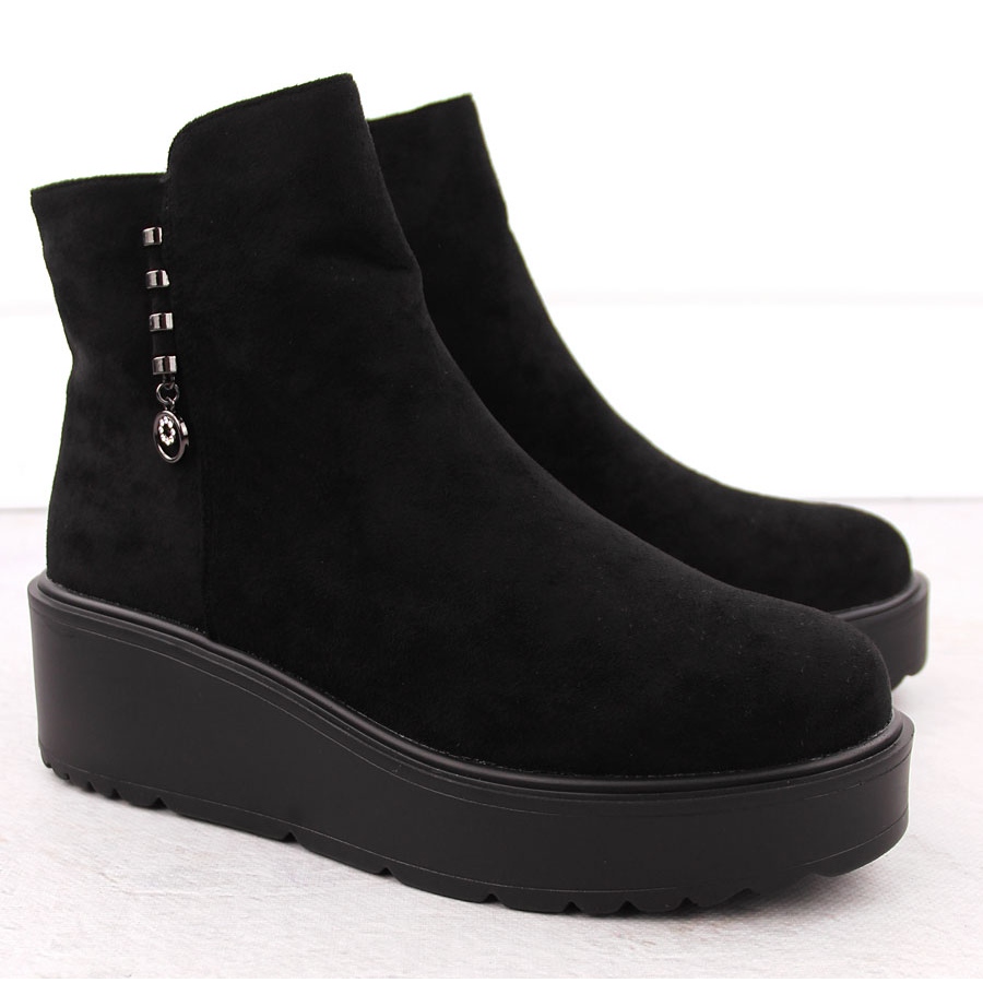 Details: Women's suede ankle boots on a thick platform, black Potocki 11305