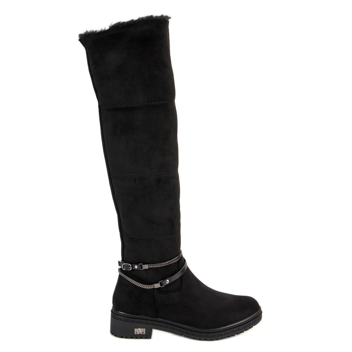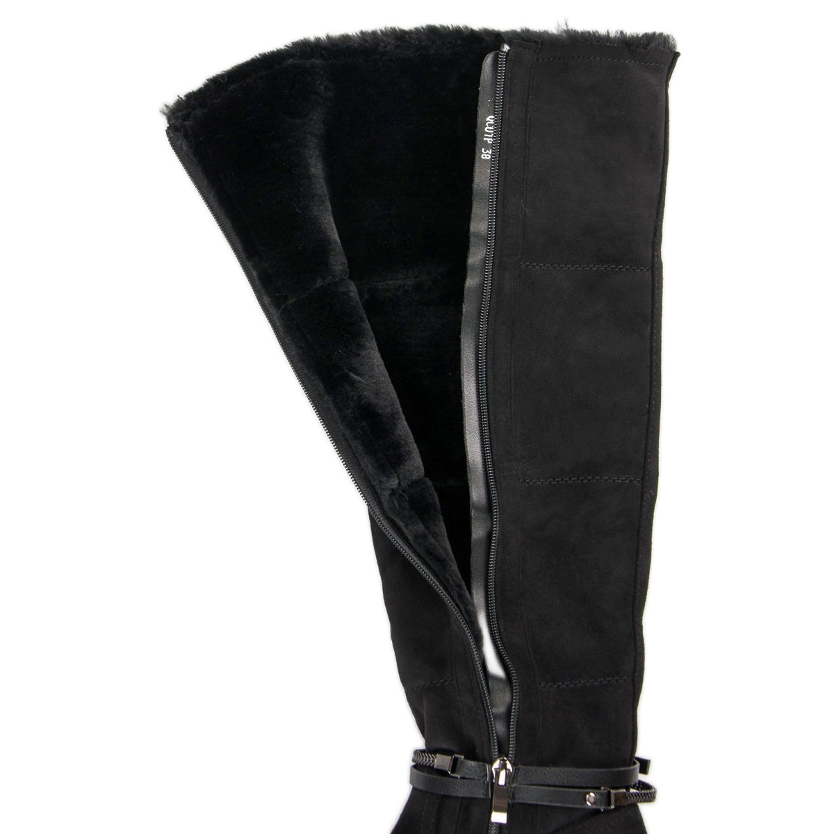 Women's suede boots Seastar in black are an ideal choice for winter days. Made of high-quality ecological suede, they provide not only a fashionable look, but also comfort and warmth. The interior of the boots is insulated with soft fur, which guarantees comfort even on the coldest days. The boots reach to the knees, which makes them perfect for wearing with both skirts and trousers.