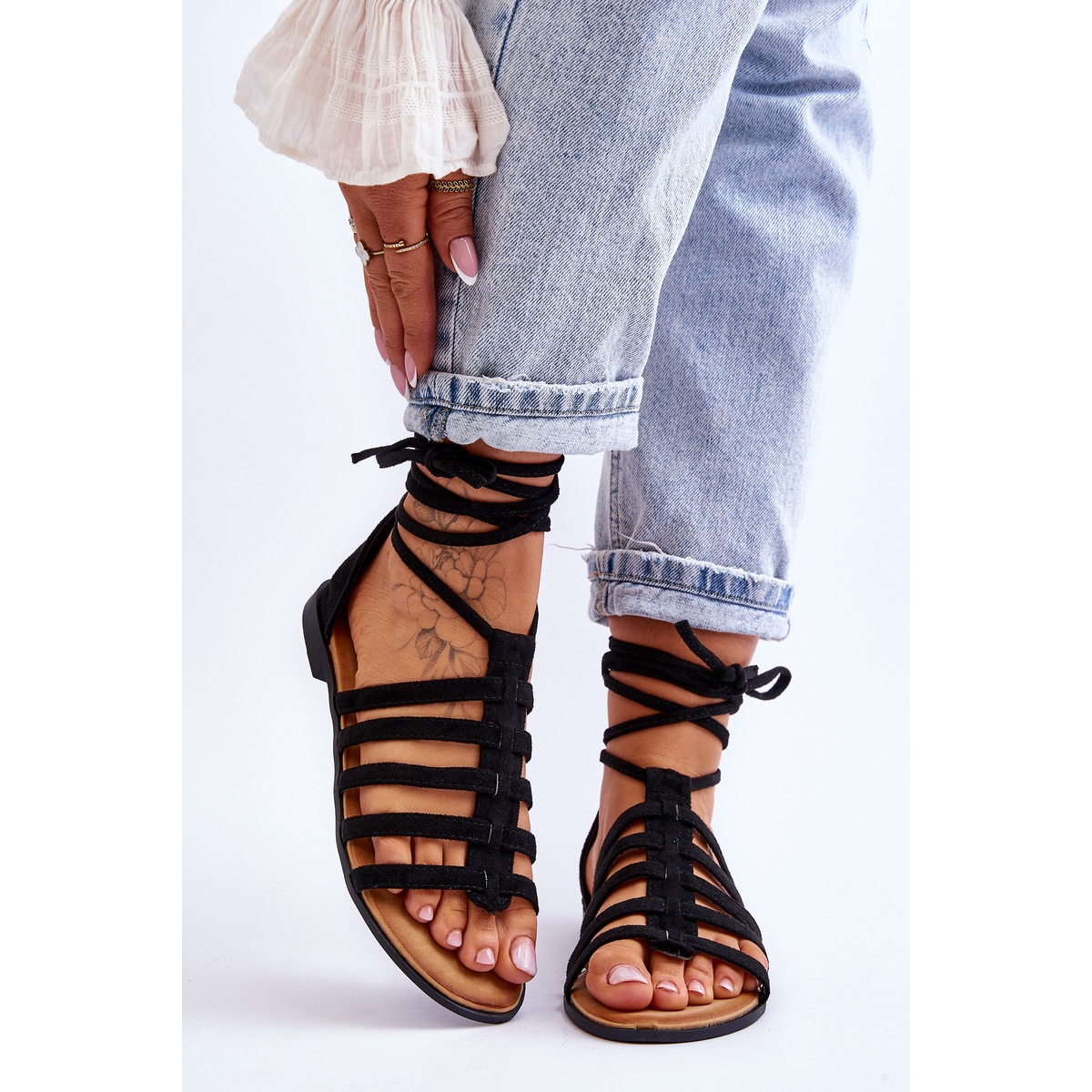 These elegant sandals made of the highest quality ecological suede not only look stylish, but are also pleasant to the touch and environmentally friendly. Soft, leather-like material ensures your feet are comfortable to wear all day long. The unique character of the footwear is emphasized by the original binding around the calf, which additionally allows for individual adjustment to the width of the calf.