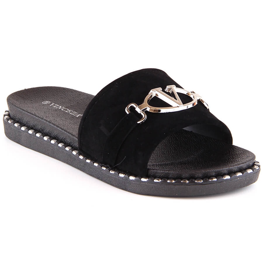 Vinceza Women's suede slippers with a black decoration Vinceza 30183