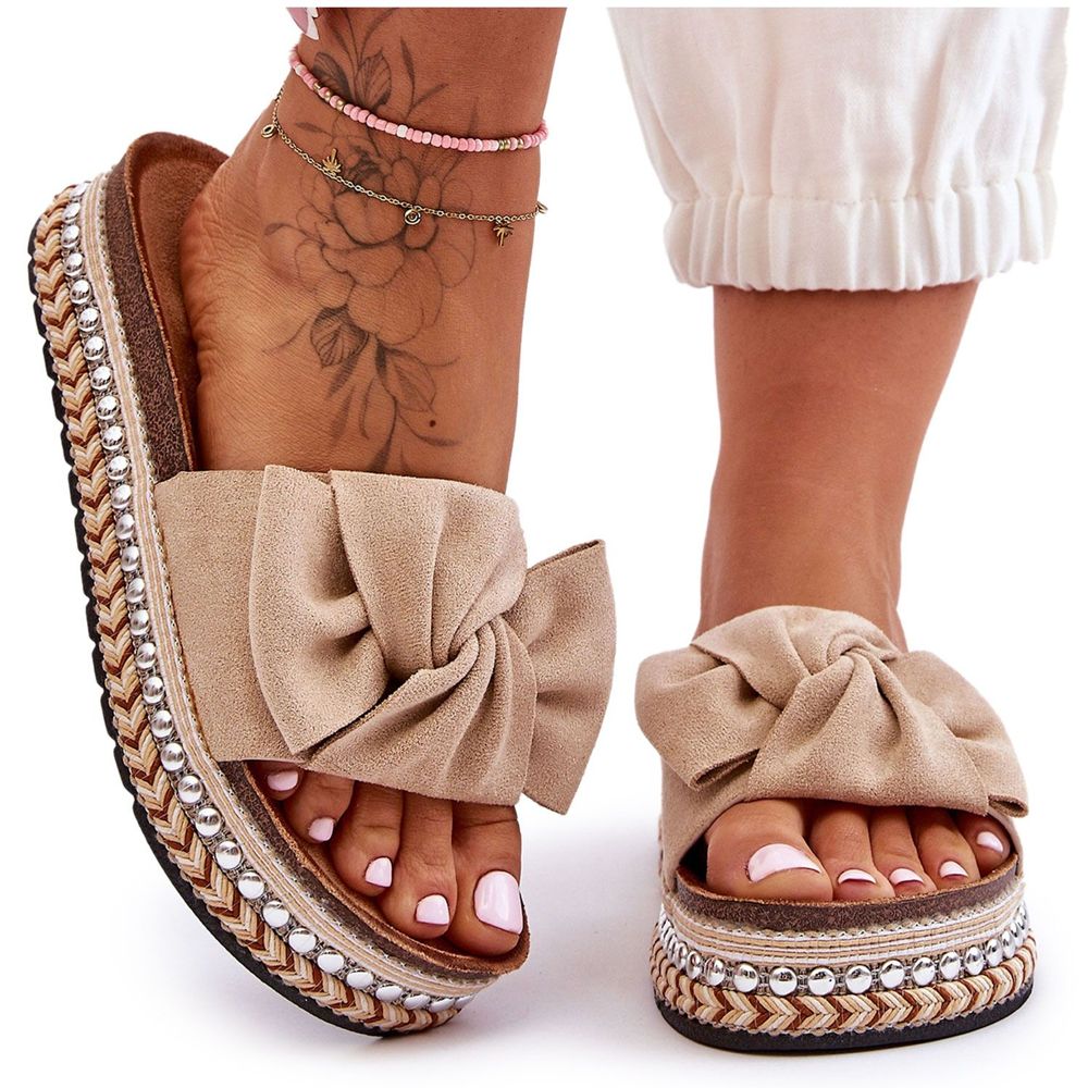 Women's Suede Slippers With a Bow Beige Lauria beige - Perfect addition to your Summer Wardrobe
