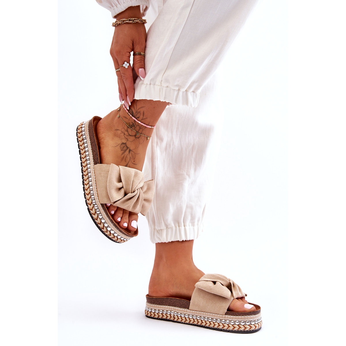 Inna marka Women's Suede Slippers With Bow Beige Lauria