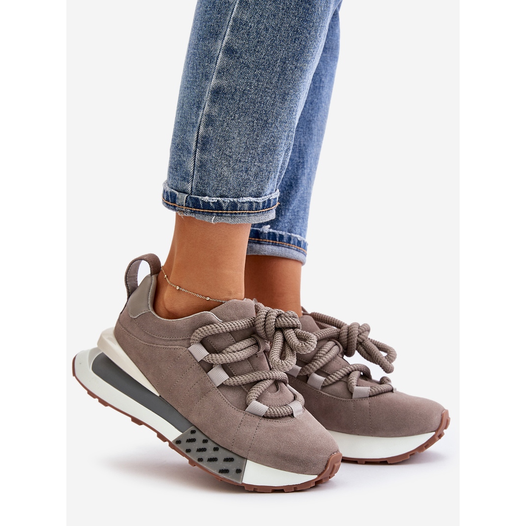 Details: Women's Suede Sneakers On A Platform With Thick Lacing Artiker 54C1463 Gray grey