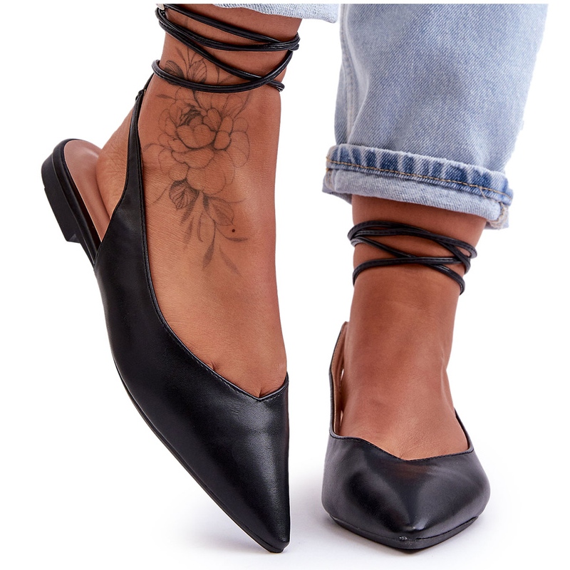 Details: Women's tied ballerinas black sandals