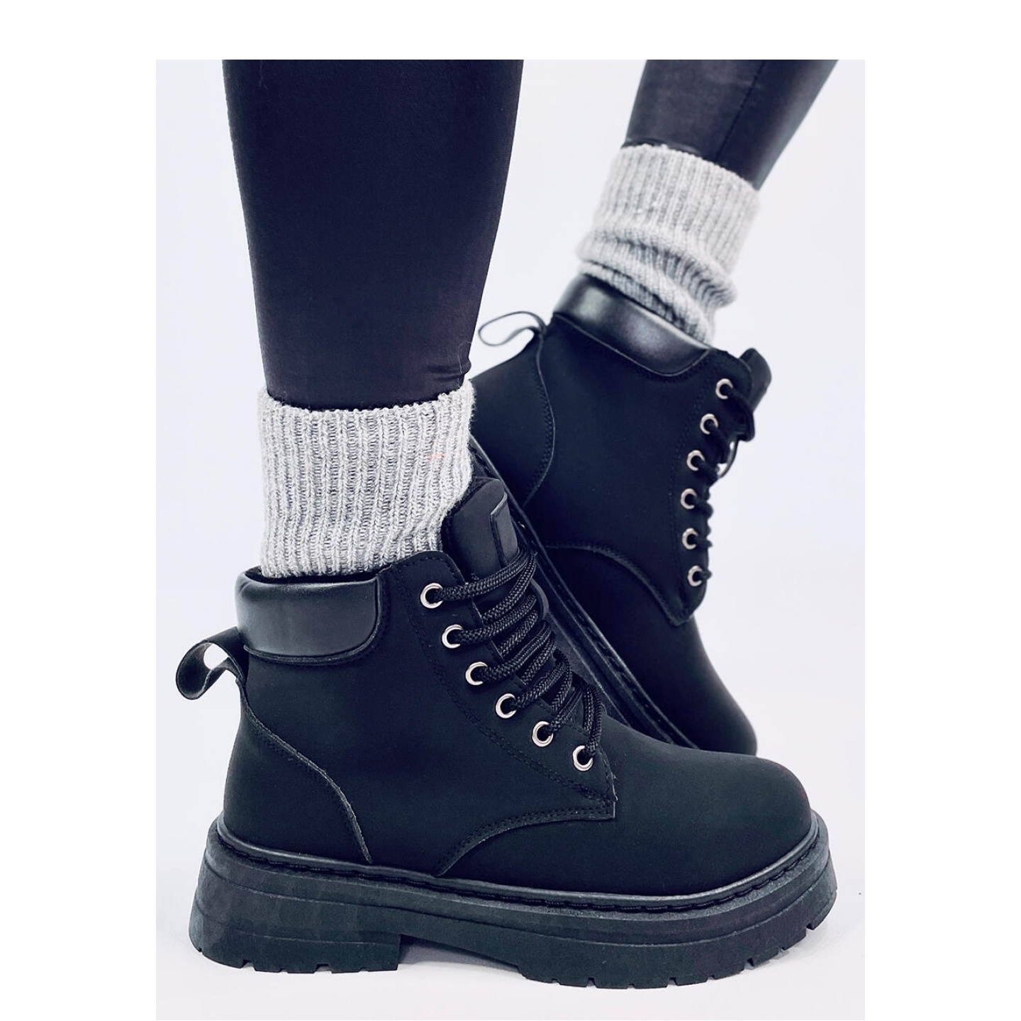 Made of matt ecological leather, they look extremely stylish and are easy to care for. Traditional lacing allows you to perfectly match any foot stuff, which makes them perfectly on the leg. They have a foam lining, which effectively warms the feet, offering comfort even on cooler days.
