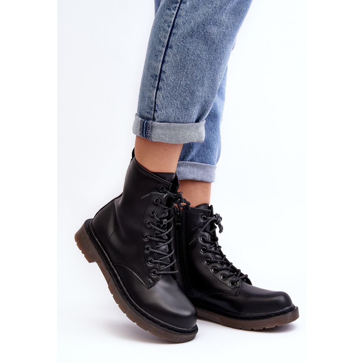 Classic, timeless hiking boots that will work in everyday stylizations for the autumn/winter season. Made of eco leather, embedded in a flat heel with a non -slip rubber sole - they combine comfort with a raw, fashionable character. Model laced with an additional lock for easy assumption. Rounded noses, stiffened for better stabilization of the foot. No insulation - perfect for cooler but not frosty days.