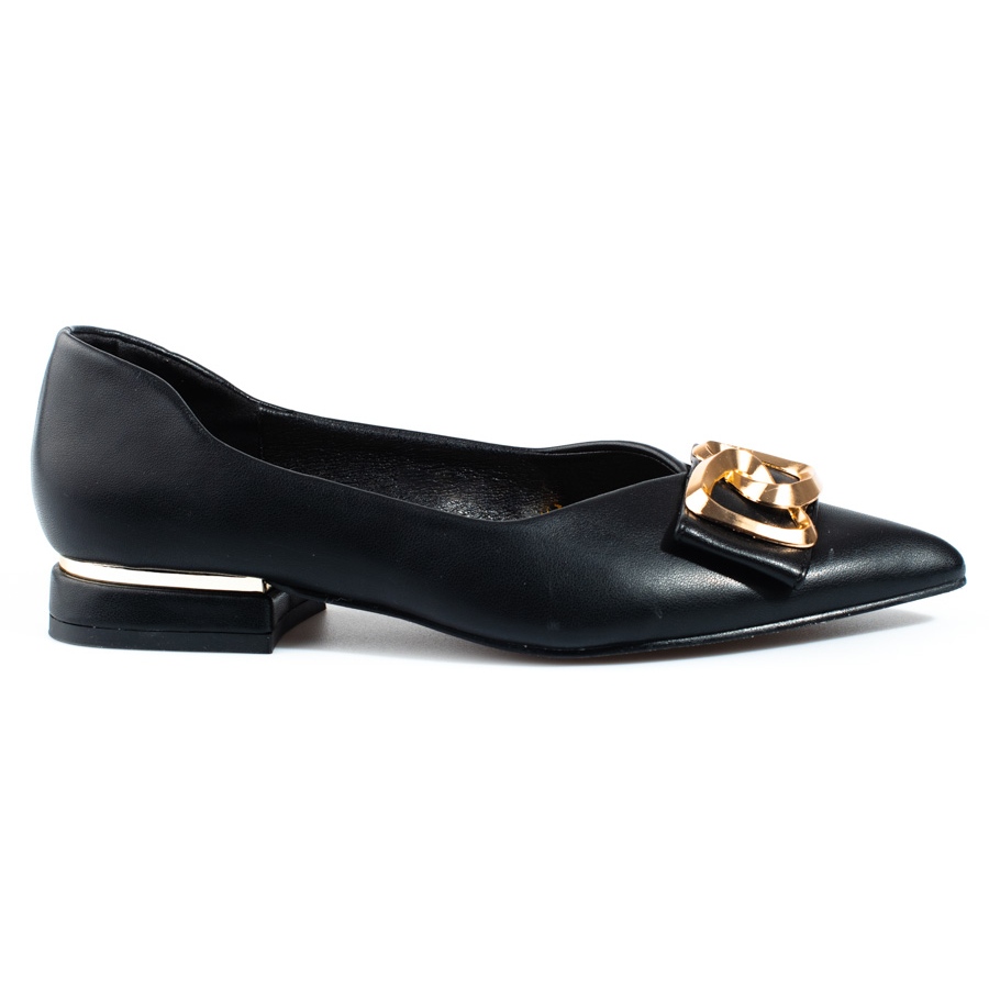 The pumps are made of high-quality eco-leather, which ensures durability and ease of care. Their heel is closed and soft, which guarantees comfort of wearing all day long. The round toe adds subtlety, and the flat heel with a height of 2.5 cm makes them suitable for long hours spent on your feet.