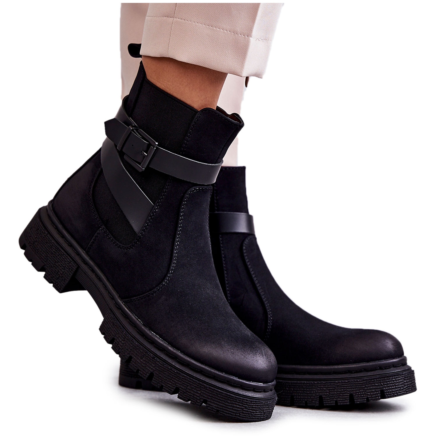 We present unique women's FE1 insulated ankle boots, which are a great choice for colder days. Made of high-quality eco-suede, they combine modern design with functionality. These stylish Chelsea boots are distinguished by a decorative eco-leather strap on the side of the upper, which is fastened with a buckle, adding an elegant character to the shoes.