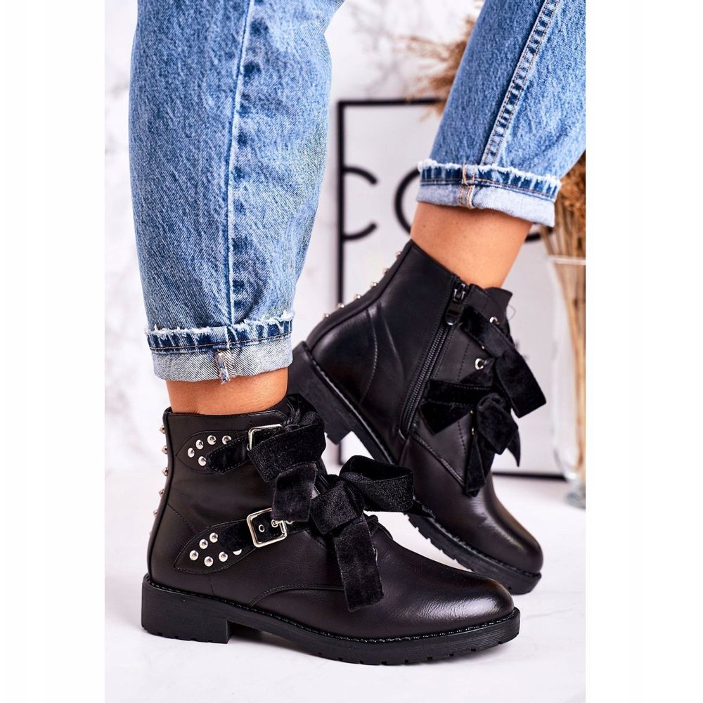 The boots stand out with fashionable details, such as metal rhinestones, which add character and make them a real hit of the season. The impressive, round toe and flat 3.5 cm heel provide comfort with every step. The higher cut, reaching above the ankle, not only looks good, but also effectively protects against the cold.