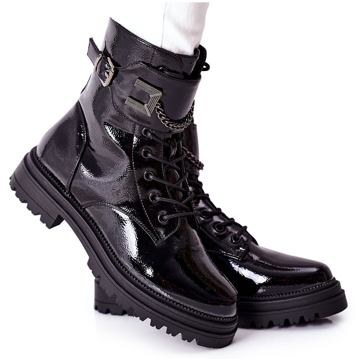 Made of patent eco-leather, these boots attract attention with their shiny finish, which will add shine to any styling. The use of a zipper sewn on the side makes it much easier to put on, while the classic lacing allows for a precise fit to the foot. The interior insulated with soft fur makes the feet remain warm and comfortable even on the coldest days.