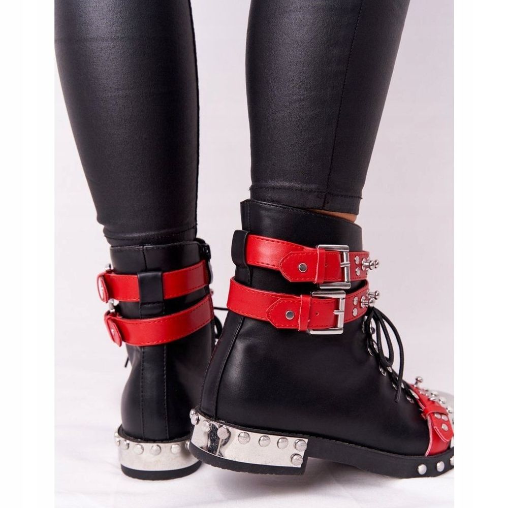 Discover exceptional style and comfort with women's insulated worker boots with rhinestones from the Lu Boo brand. These black and red boots are the perfect complement to any fashionable styling, especially in glam rock or grunge styles. Made of high-quality ecological leather, they offer not only a fashionable look, but also comfort thanks to the insulation in the form of a shoe blanket.