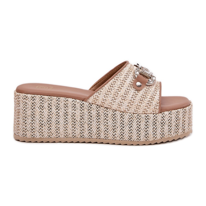 Inna marka Women's wedges with wedge with braid and beige decoration