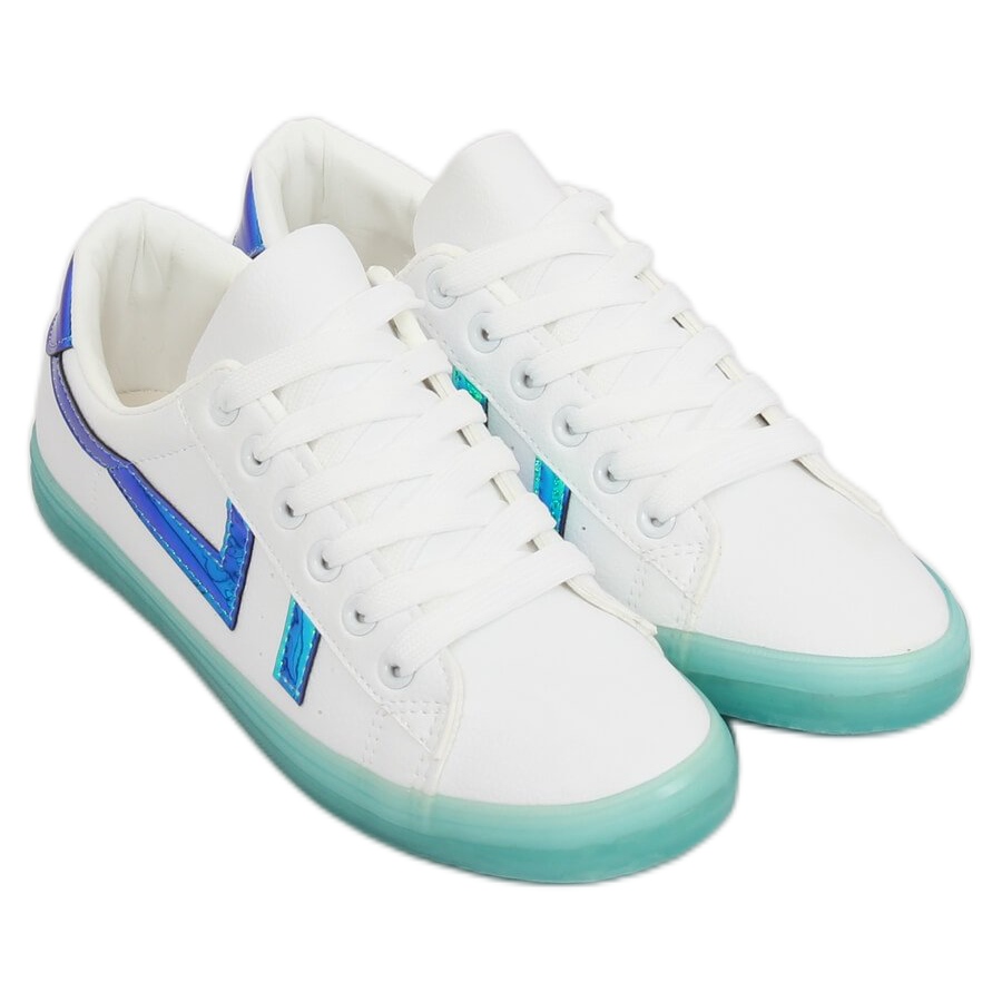 Inna marka Women's white and green sneakers B0-08 WHITE / L.GREEN