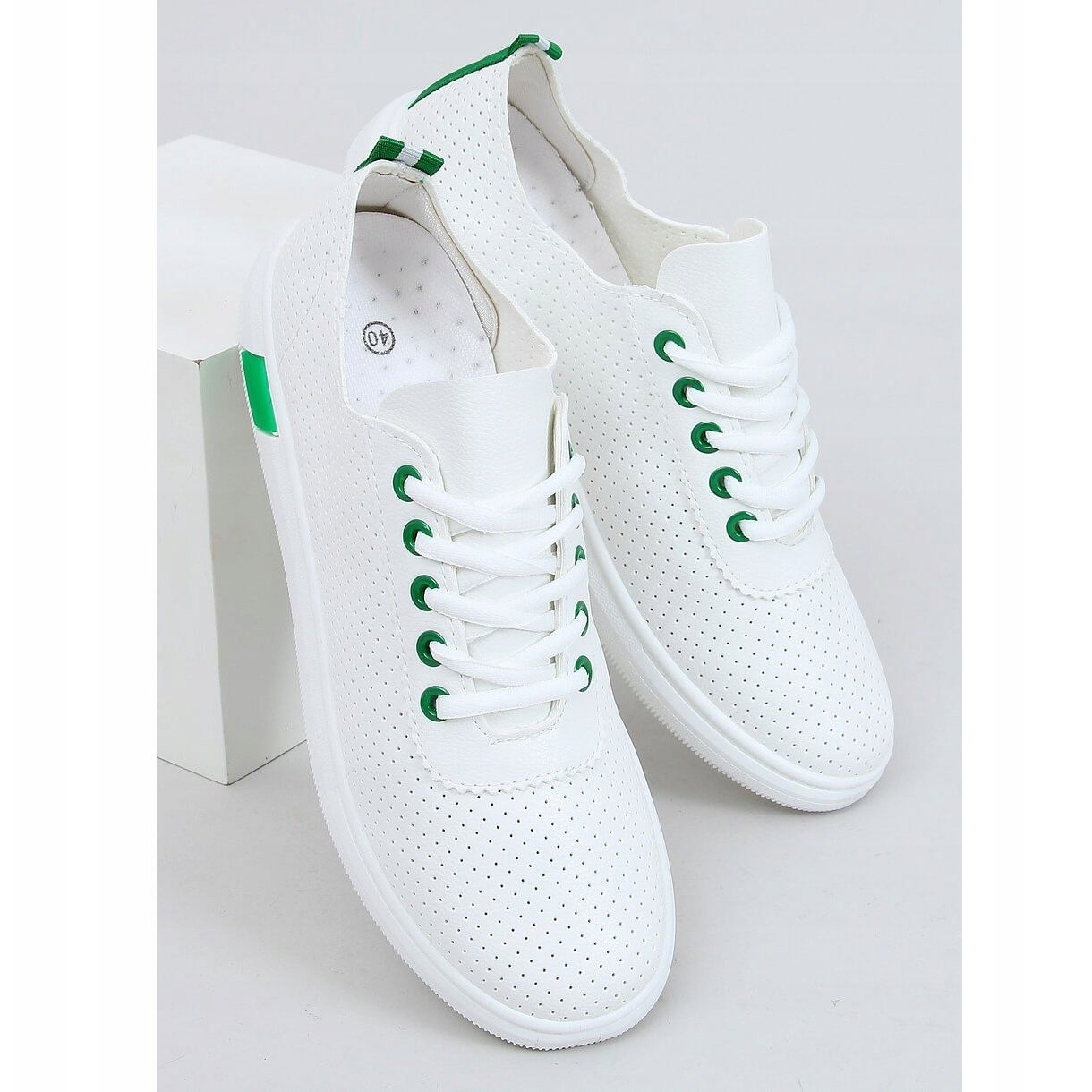 Details: Women's white and green sneakers LA42 Green