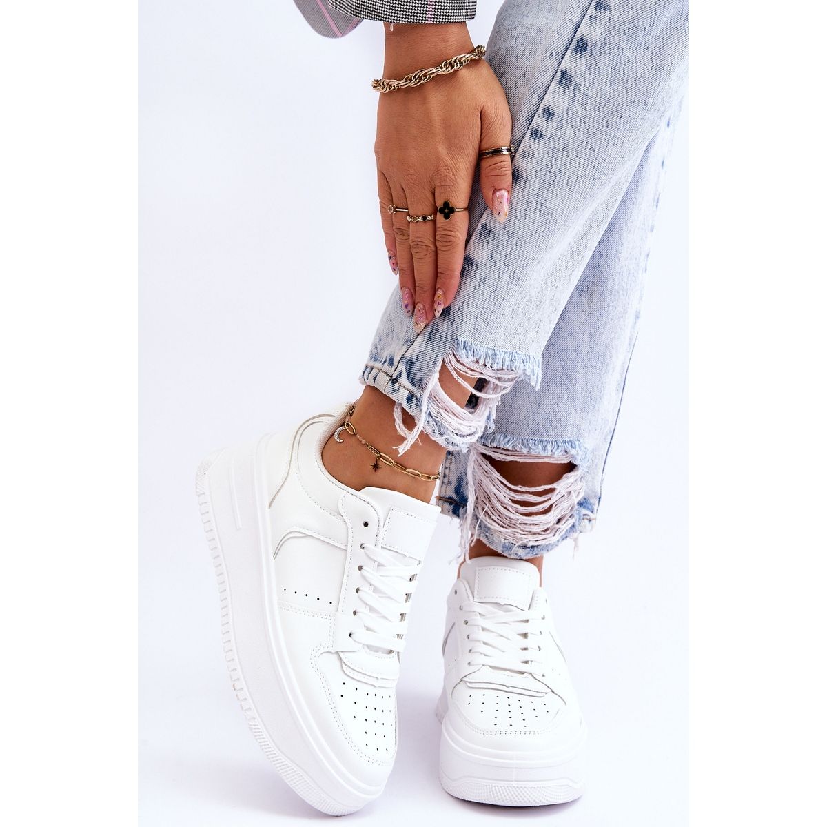 Discover comfort and style in every step with women's sports shoes on a high platform from the FB2 brand. These elegant, white shoes are distinguished not only by their modern design, but also by the careful workmanship of high-quality eco-leather, which ensures durability and comfort of use. Delicate perforation on the front adds lightness and breathability.