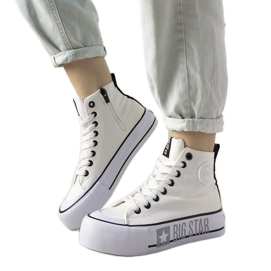 White Big Star women's Balvin ankle-high sneakers are a great choice for women who value not only the latest trends, but also comfort. The Big Star brand product is distinguished by its careful workmanship and modern design.