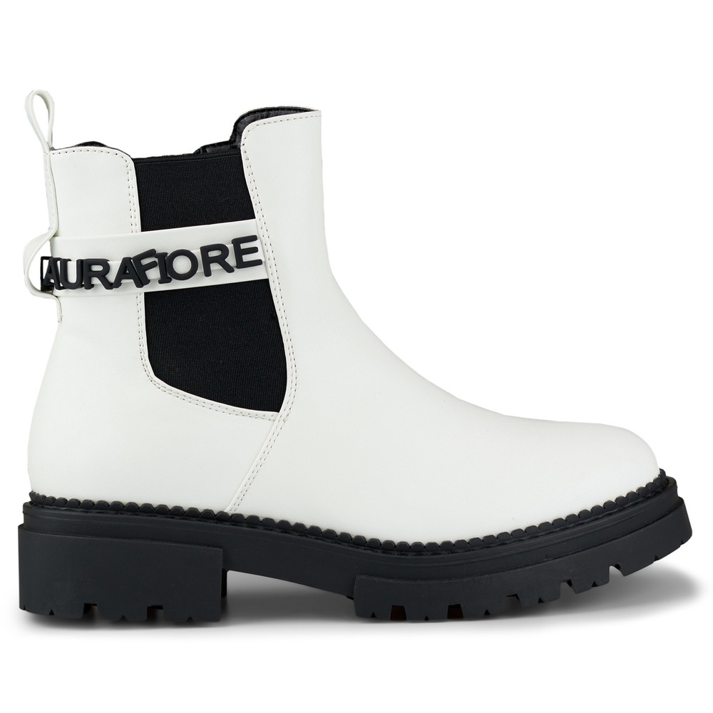 Details: Women's white boots made of eco-leather with a decorative inscription