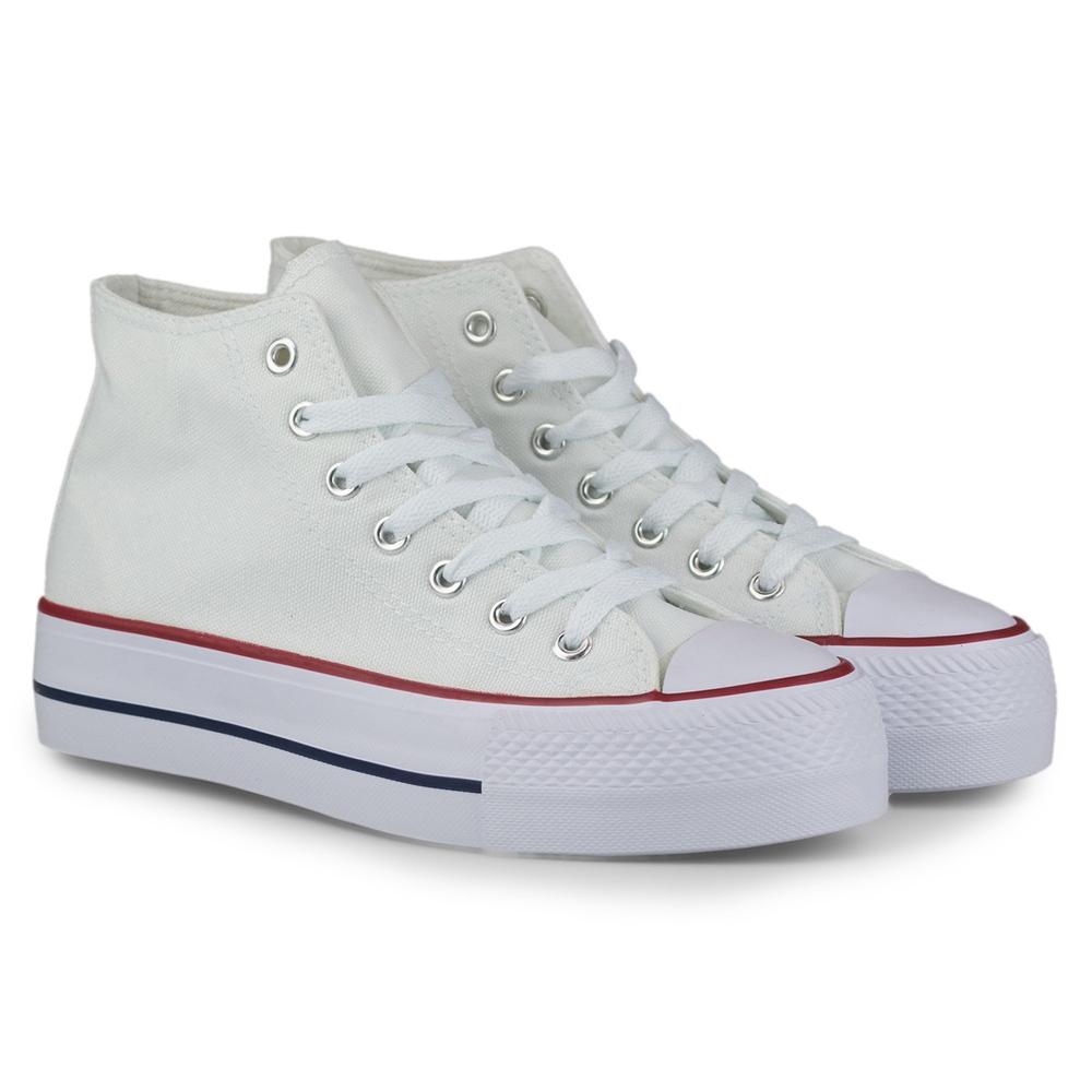 Modern, timeless women's sneakers from the Keeshoes collection, designed for comfort and universal style. Made of high quality textile material in pure white, ideal for the spring/summer season. The model on a high upper (9 cm) with a decorative, stable platform with a height of 4 cm emphasizes the figure, while ensuring comfort of wearing all day.